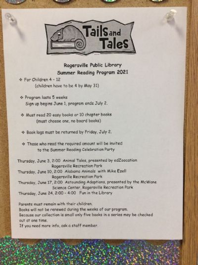For more information call the library 256-247-0151